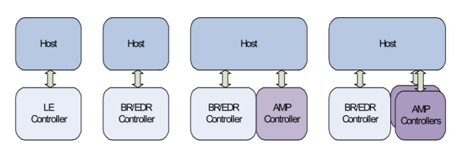 - MAC/PHY (AMP) Controller:二级控制器,可替代的,内部包含 802.11 PAL (Protocol Adaptation Layer),802.11 MAC,PHY,可选的HCI。