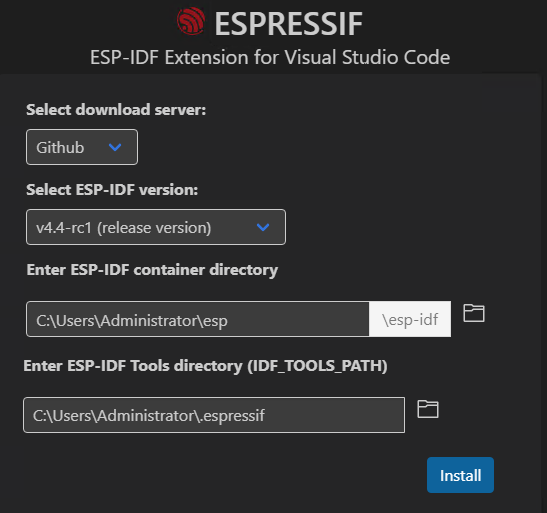 VSCode 插件仓库搜索“ESP-IDF” Espressif IDF 现在最新版本是 v1.3.0