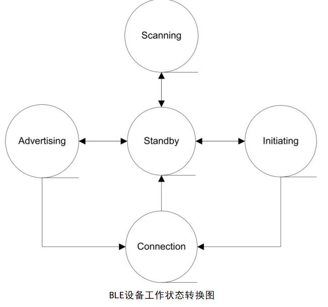 BLE技术采用了非常快速的连接方式,因此平时可以处于“非连接”状态(节省能源),此时链路两端相互间只是知晓对方,只有在必要时才开启链路,然后在尽可能短的时间内关闭链路。